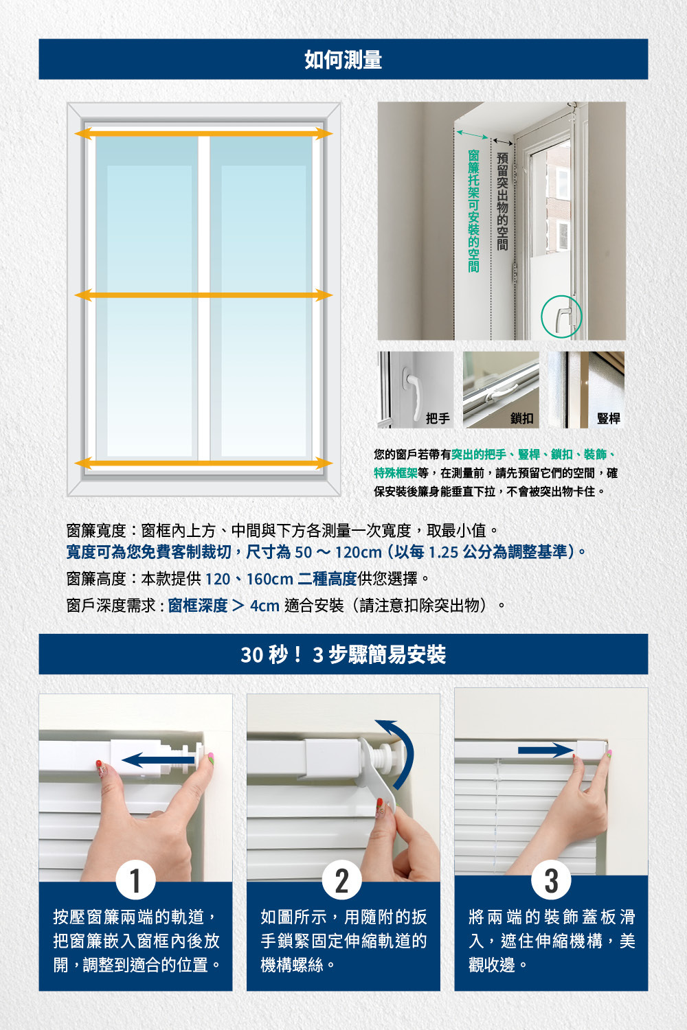 (寬度以每1.25公分為調整基準,高度有120、160cm有二種尺寸可選擇)