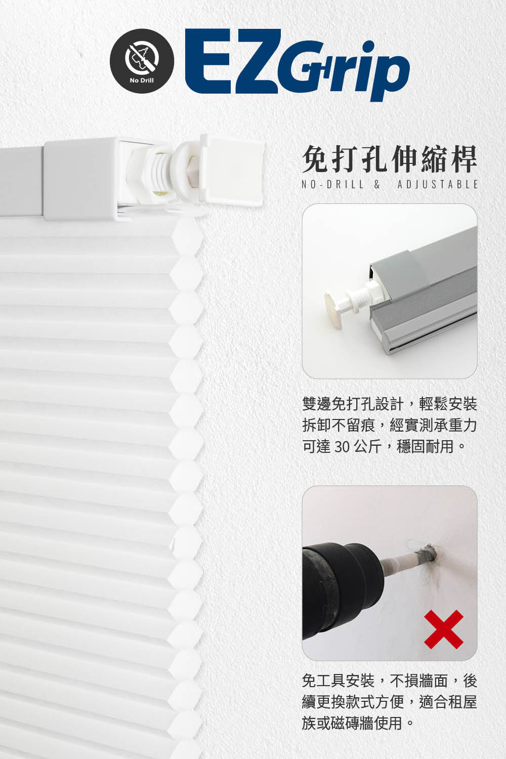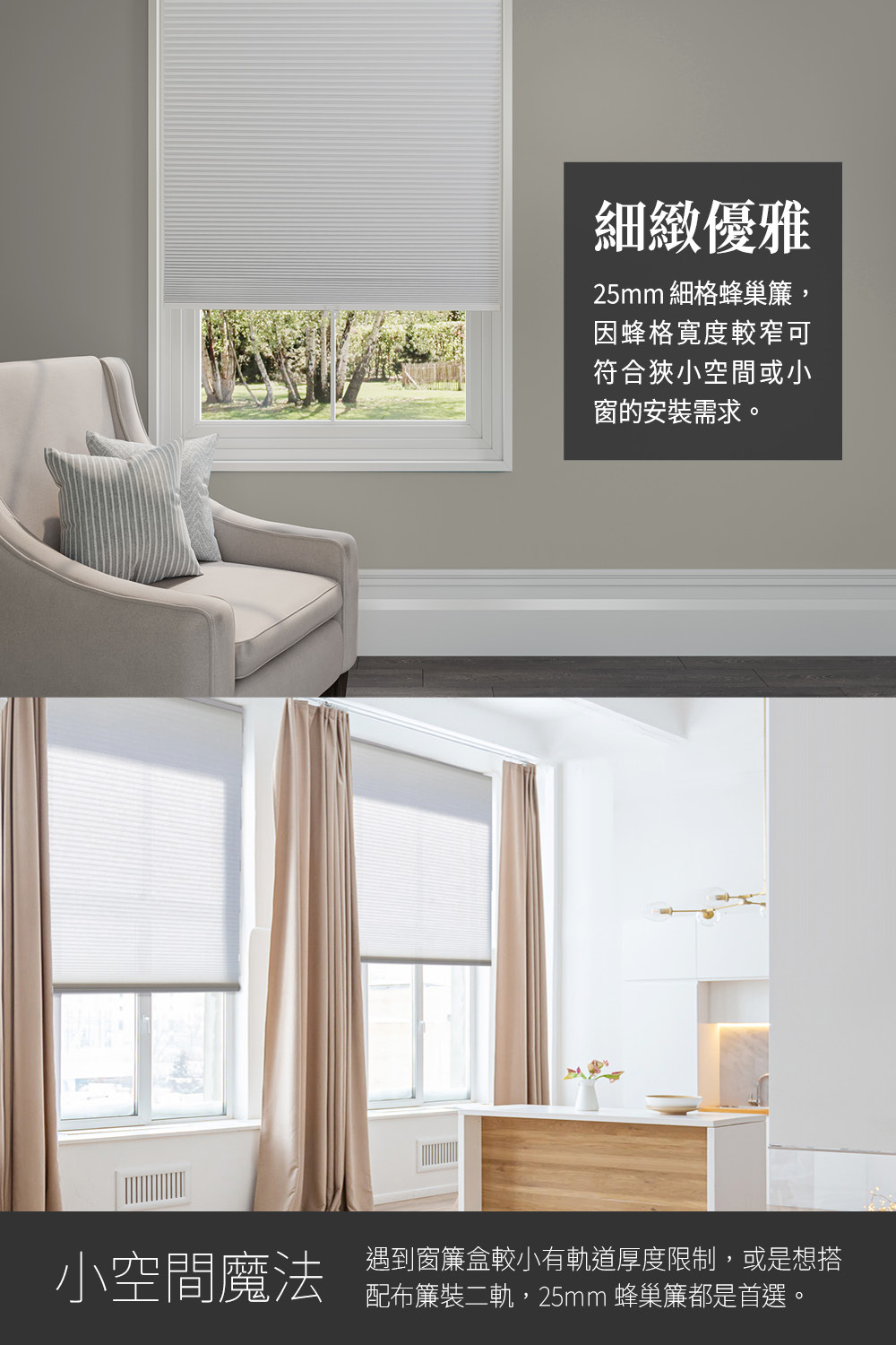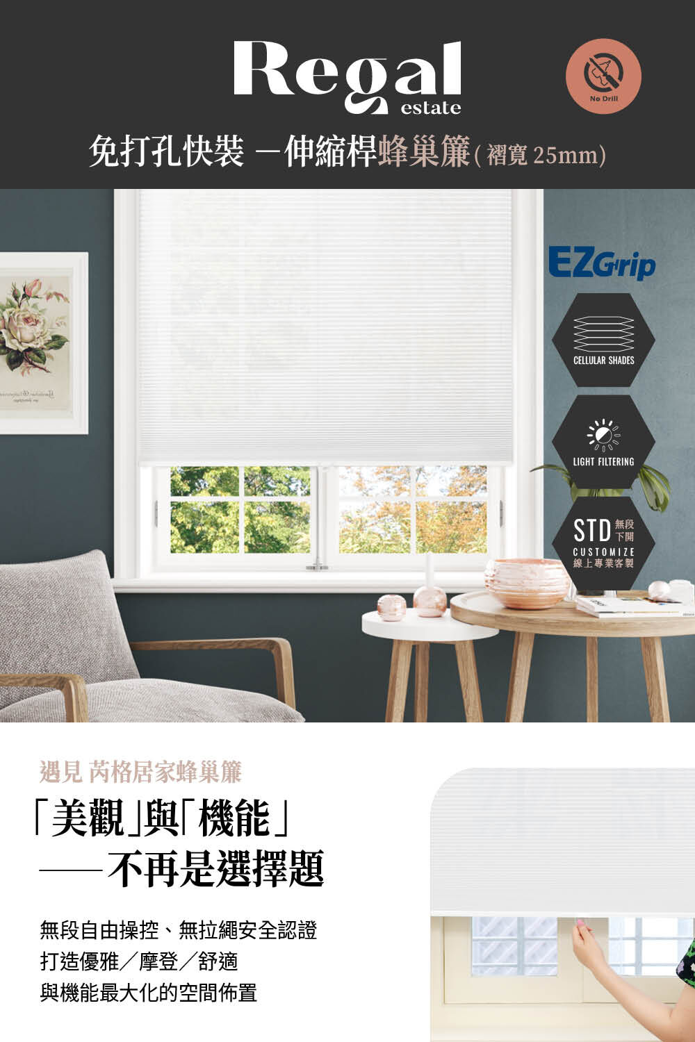 伸縮桿無段下開蜂巢簾-格寬25mm/透光/灰色【REGAL芮格居家】