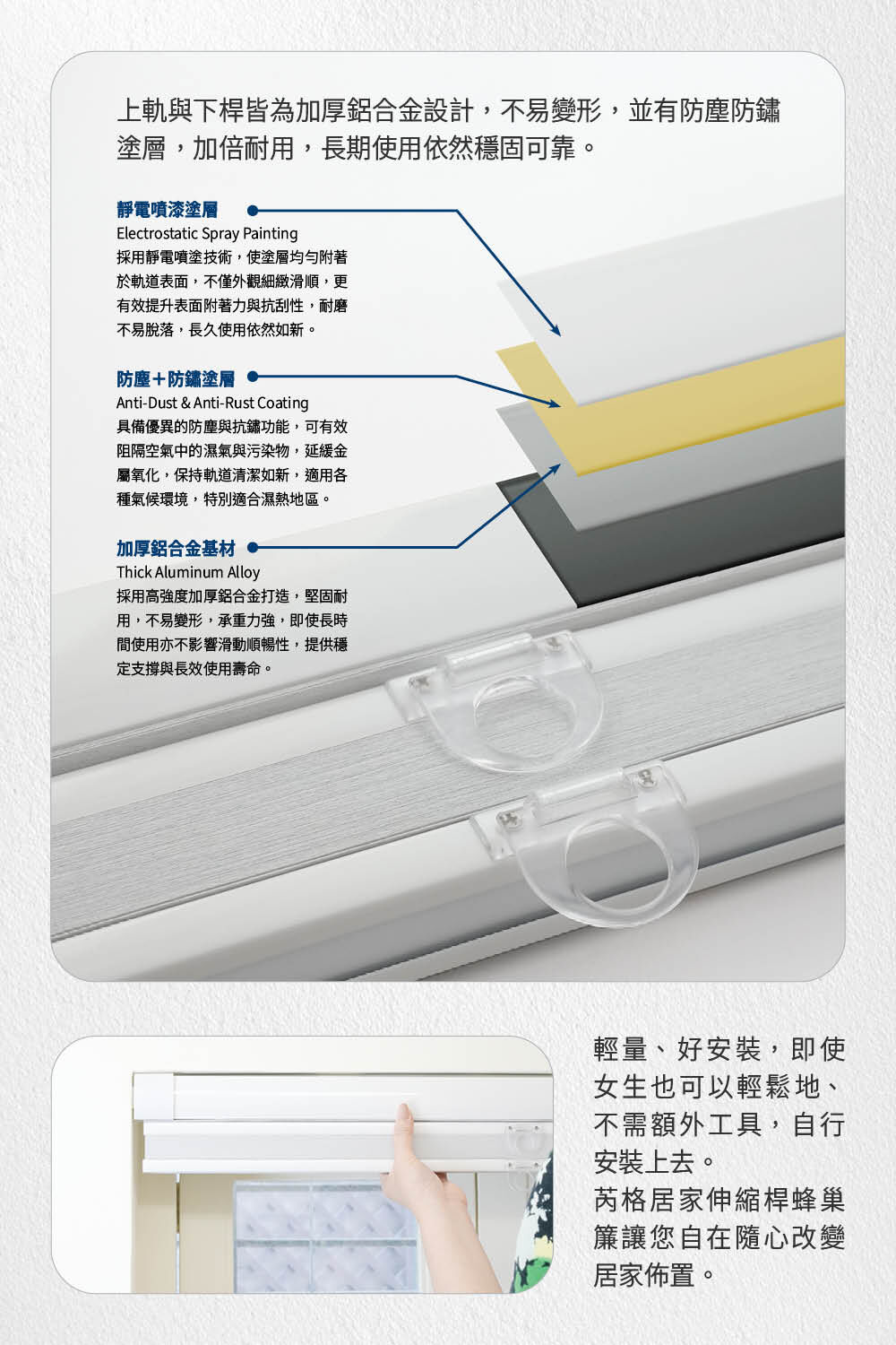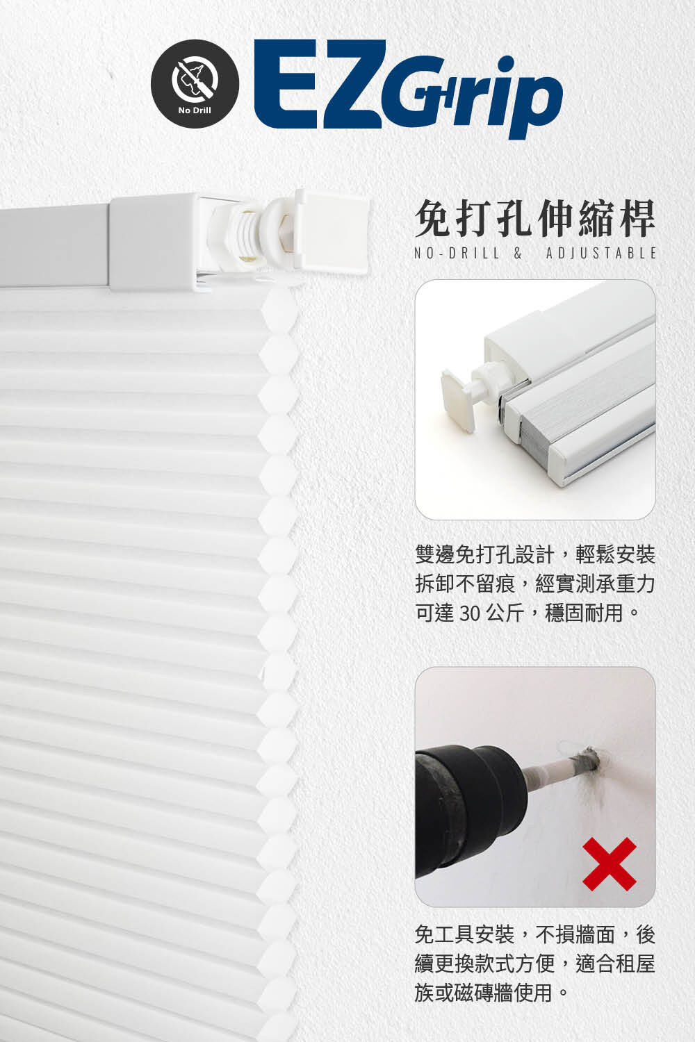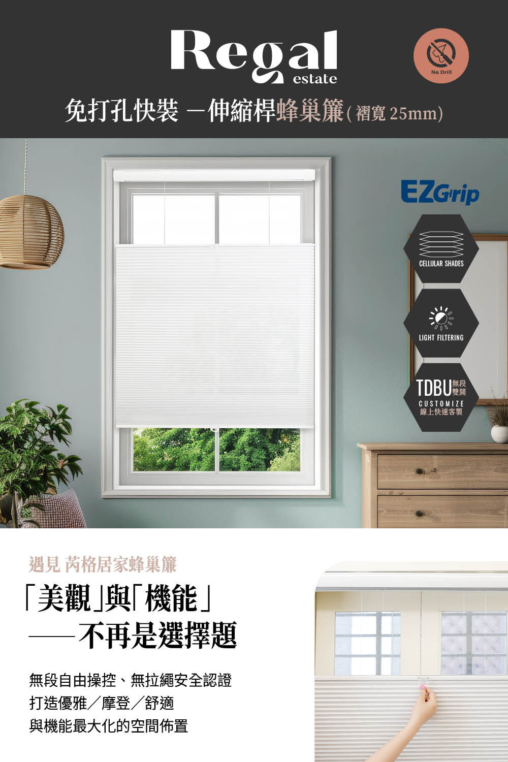伸縮桿無段雙開蜂巢簾-格寬25mm/透光/灰色【REGAL芮格居家】