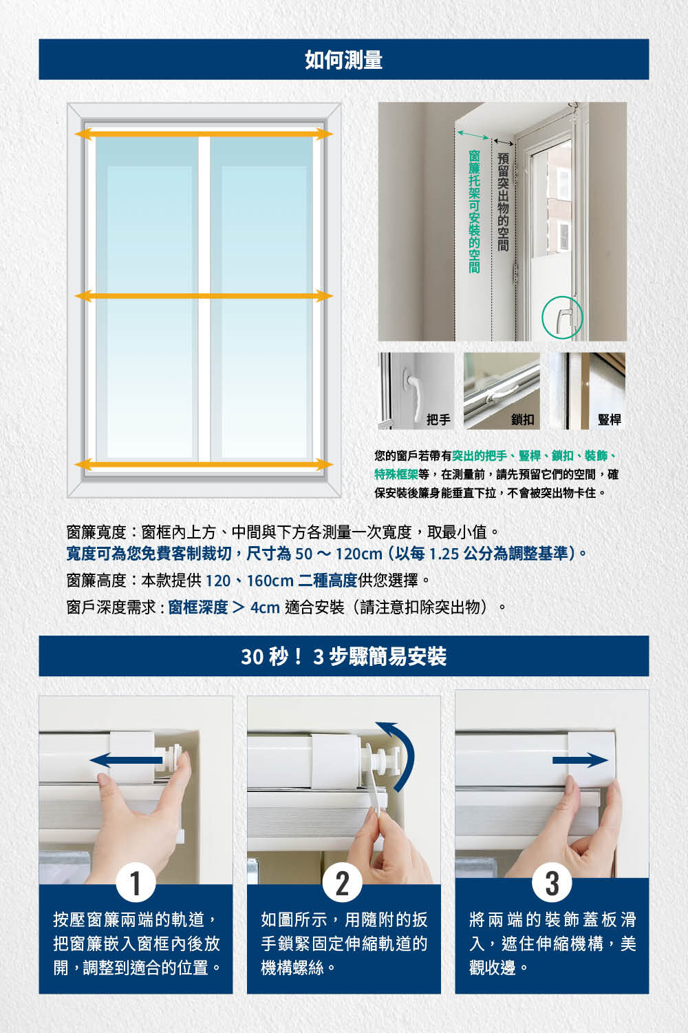 (寬度以每1.25公分為調整基準,高度有120、160cm有二種尺寸可選擇)